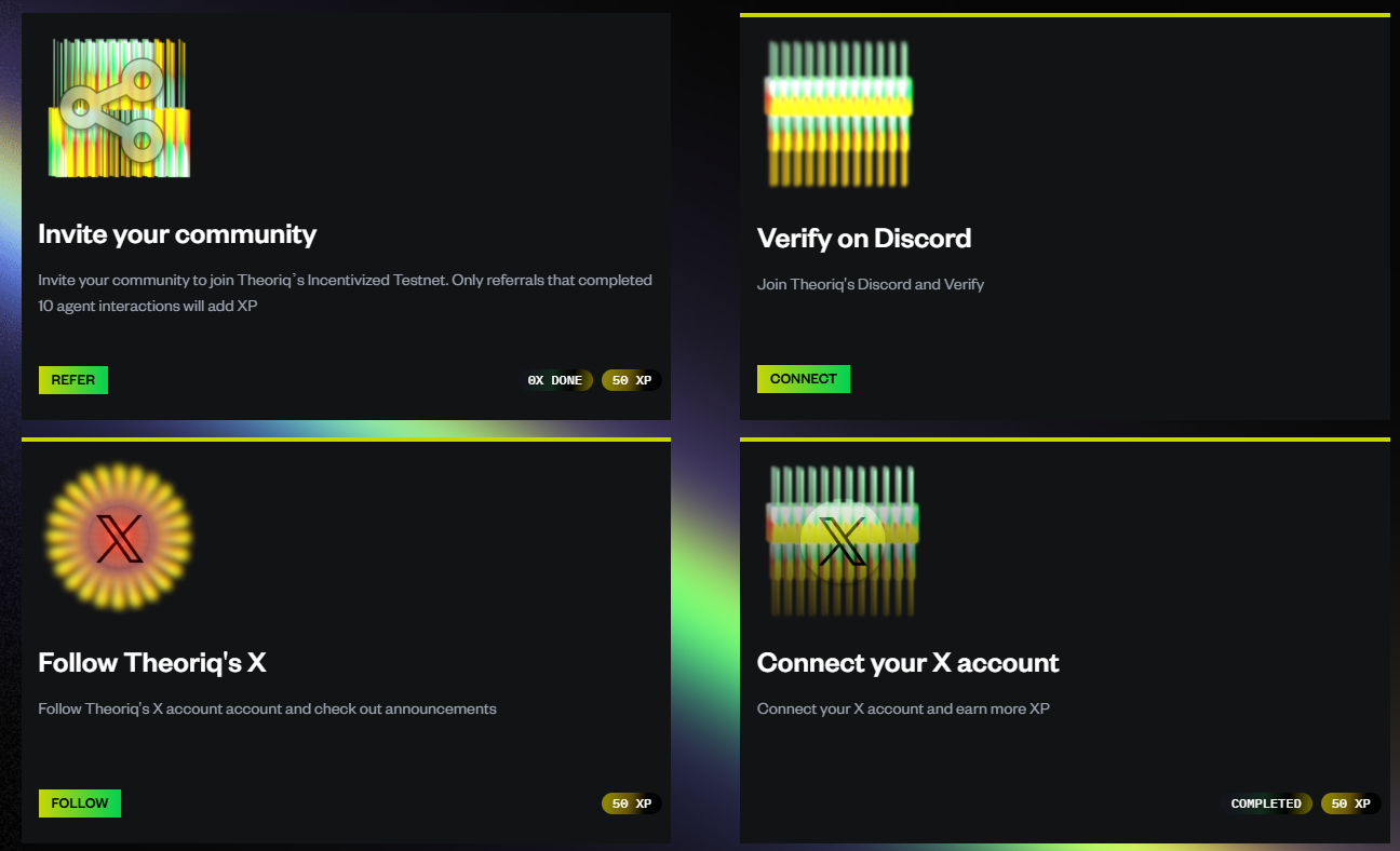 Theoriq đã ra mắt mạng Testnet để người dùng trải nghiệm trước. Anh em tranh thủ vào trải nghiệm để kiếm XP, Xp sau này sẽ được đổi thành token. Dưới đây là bài viết hướng dẫn