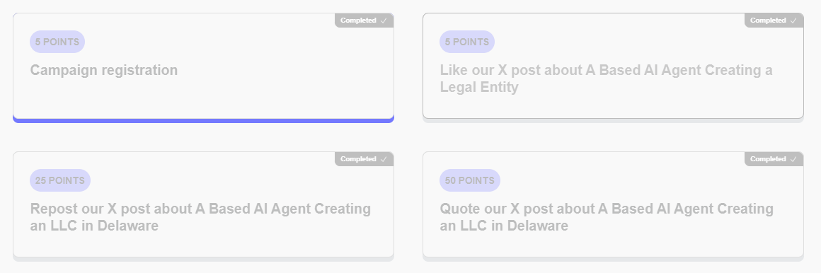 Kích hoạt ngay lập tức: Người dùng có thể tạo và quản lý công ty của họ trên blockchain bằng cách kết nối ví tiền điện tử, loại bỏ sự chậm trễ thường gặp trong quy trình thành lập công ty truyền thống.