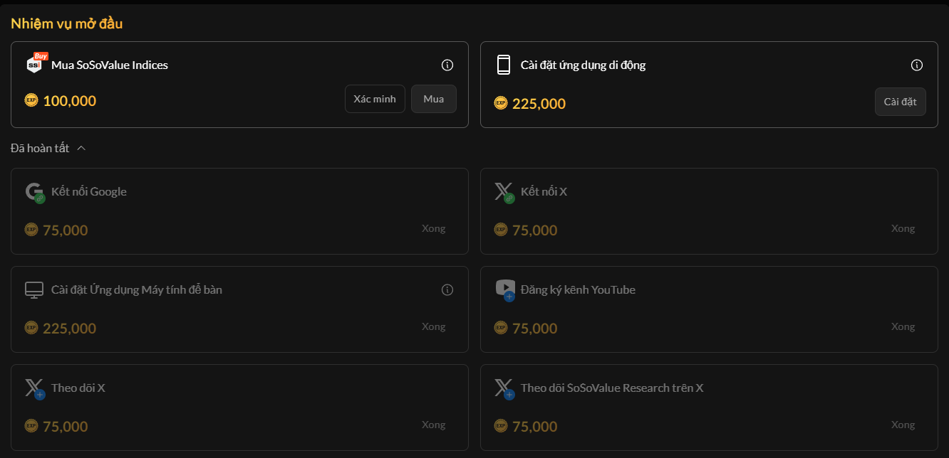 Hiện tại mới có 1 nhiệm vụ tính điểm bắt đầu làm, Dự án này cần vào điểm danh hằng ngày để tích điểm, các bạn tranh thủ làm sớm để có thể kiếm được nhiều điểm nhất có thể nhé