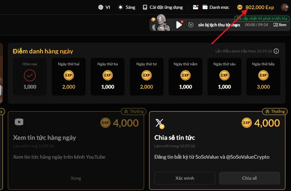 Hằng ngày anh em chịu khó vào checkin để kiếm thêm EXP nhé, nhiệm vụ checkin và xem tin tức của nó nữa